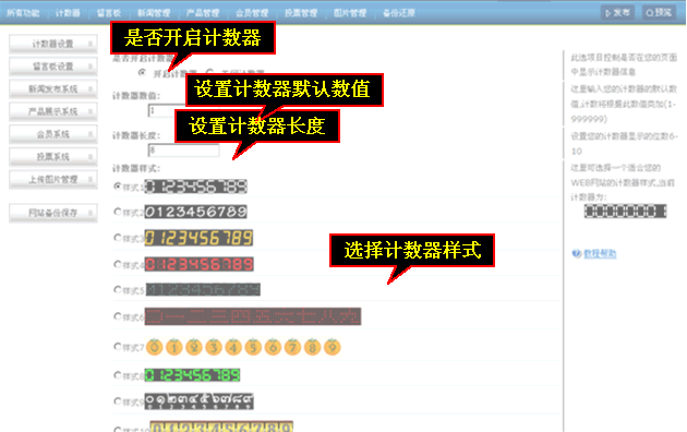 设置是否开启计数器计数器数值计数器长度选择计数器样式,最后点击右下角“应用更新”完成添加 。