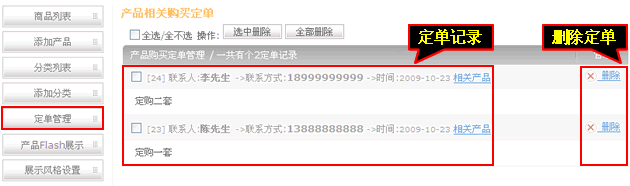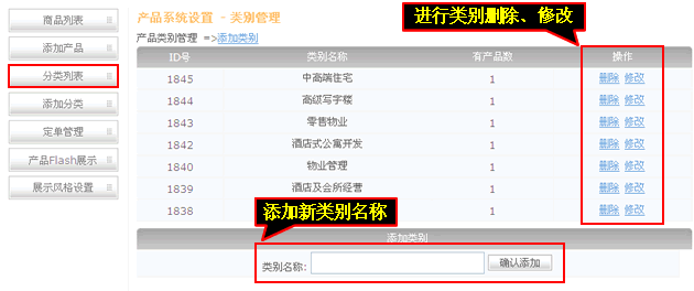 2、设置“邮件通知”,产品管理操作可对产品进行移动、推荐、上架、编辑、删除等操作。
